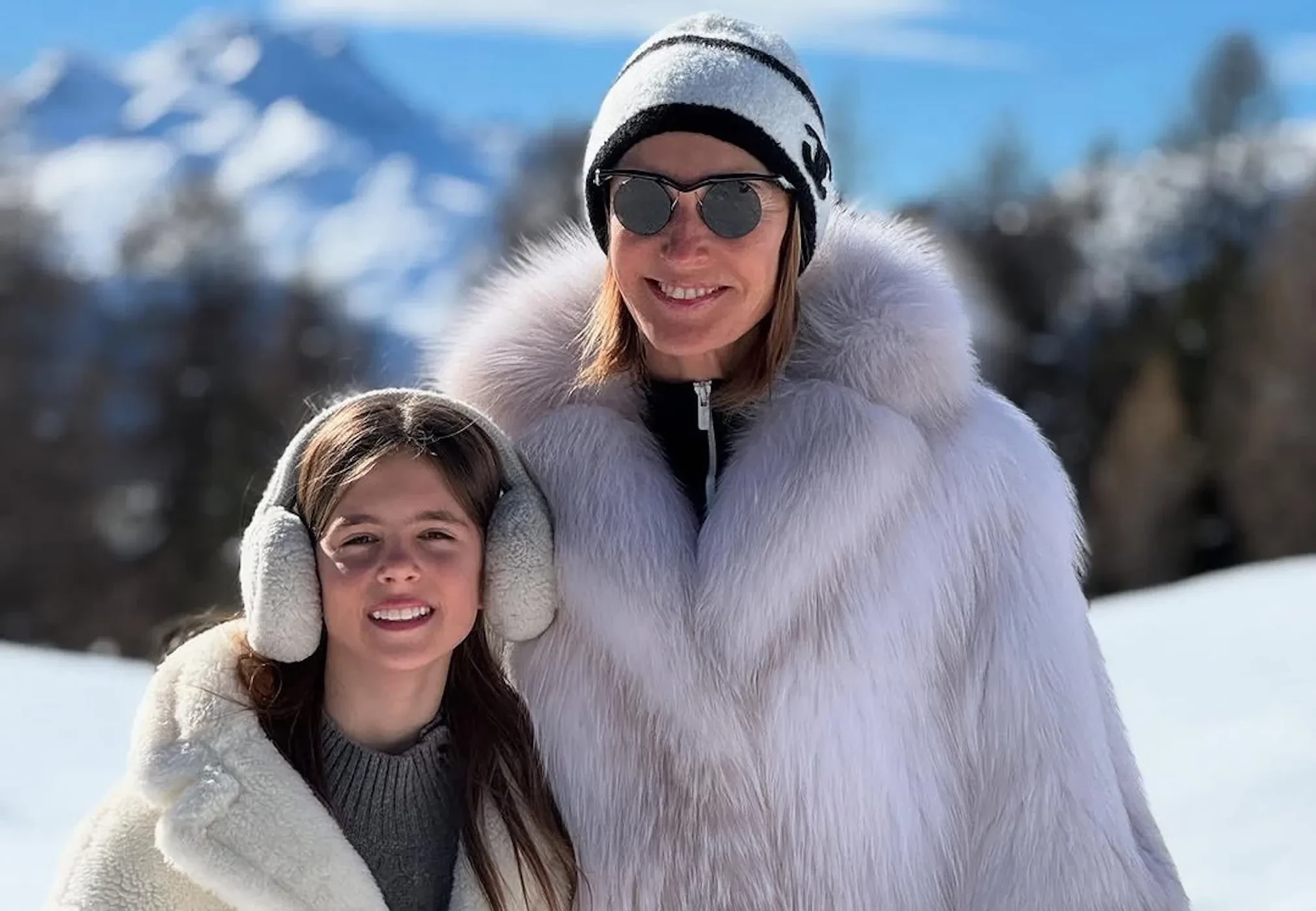 На фото Оксана позирует в белой шубе, шапке Chanel и круглых солнцезащитных очках, а её младшая дочь выбрала плюшевое пальто, меховые наушники и сапоги в тон.