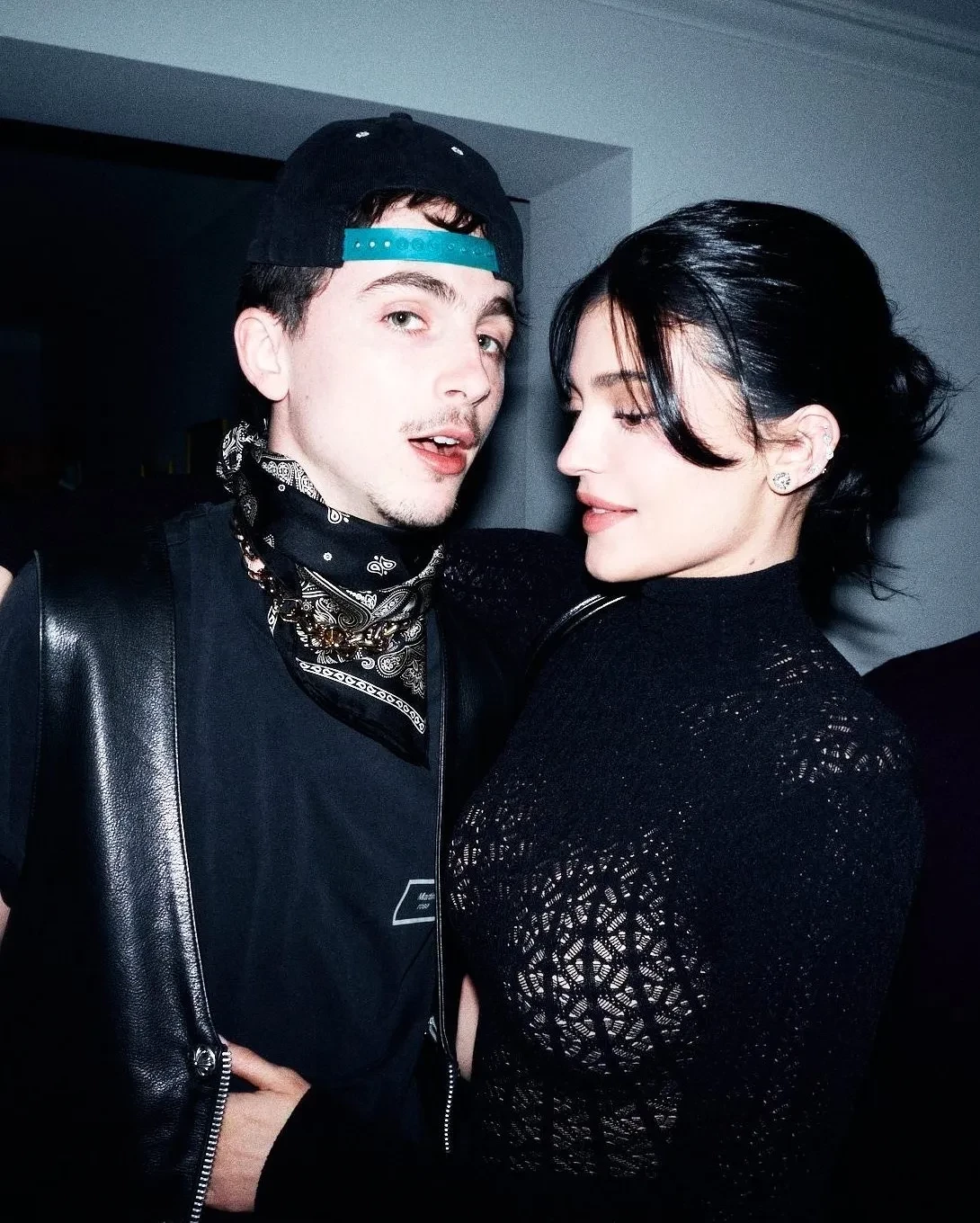 Кайли надела прозрачное чёрное кружевное платье, а Тимоти выбрал чёрную футболку, кожаный жилет и бандану. На совместном снимке пара обнималась и выглядела счастливой.