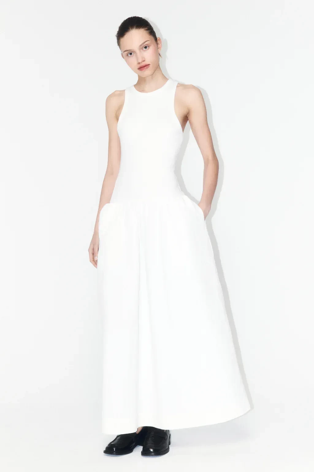 Силуэт юбки-трапеции актуален и сегодня. Стилизовать такое платье можно с лоферами, а для более вечернего образа можно надеть лодочки или мюли.