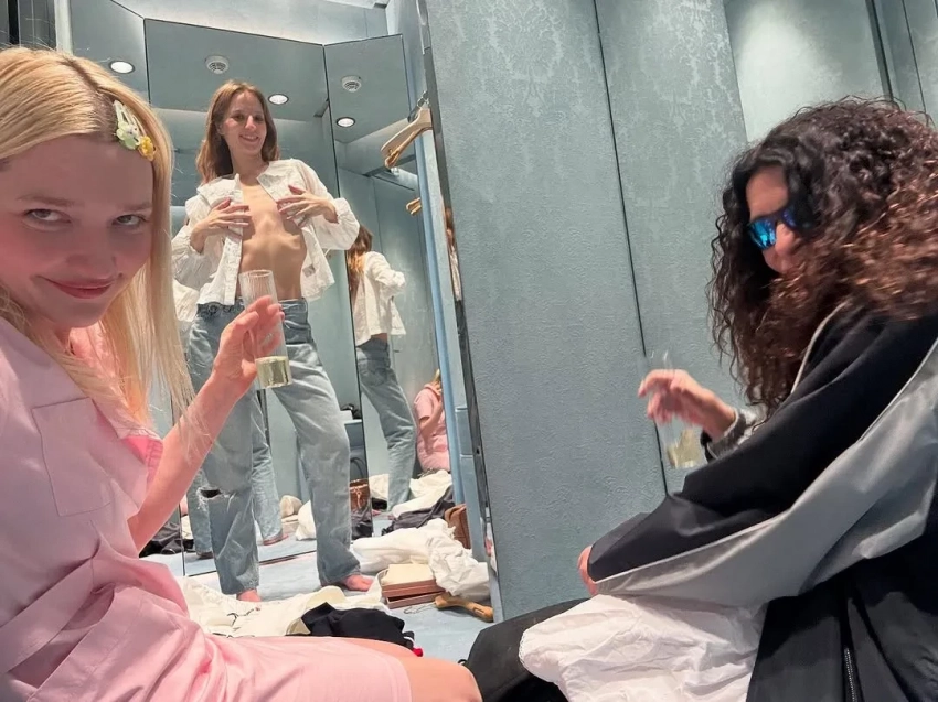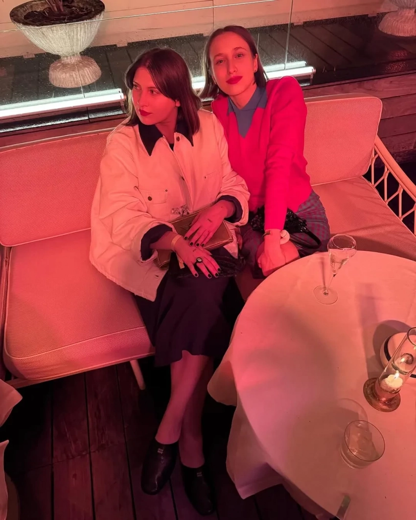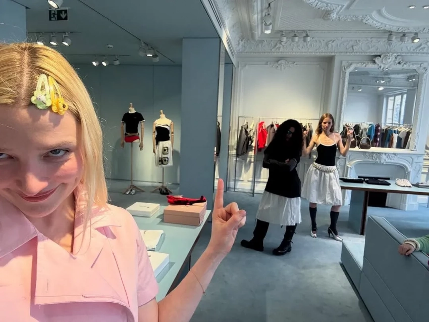 Алина Григалашвили/Фото: alinagriga/Instagram*На самом показе Miu Miu тоже было звёздно: 38-летняя Елена Перминова позировала с блогершей Аллой Брулетовой, а участница шоу "Холостяк" Мария Лобанова прилегла на белоснежную постель прямо на улице. Показ также посетили подруга Лобановой и победительница "Холостяка" Катерина Сафарова с высветленными бровями, Ксения Чилингарова в лаймовом жакете и Лина Дембикова.