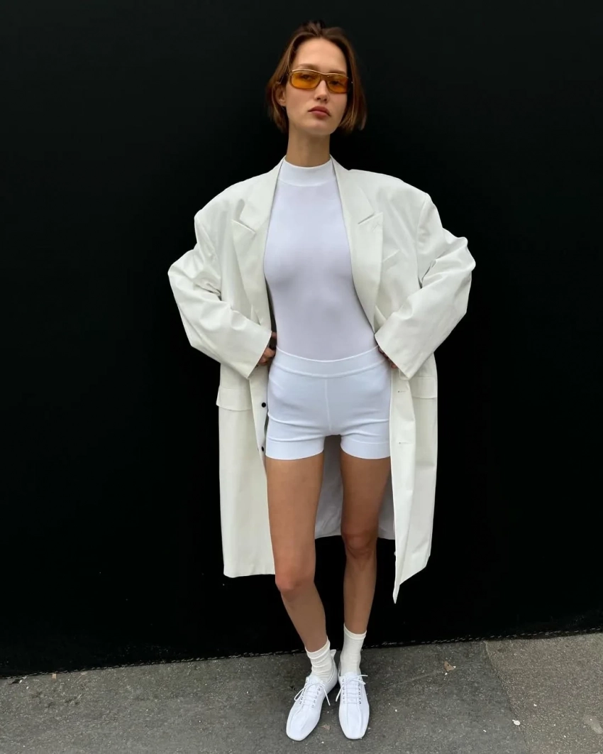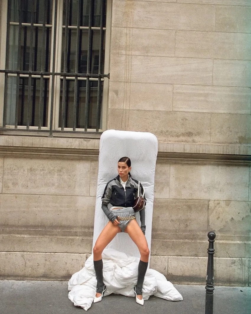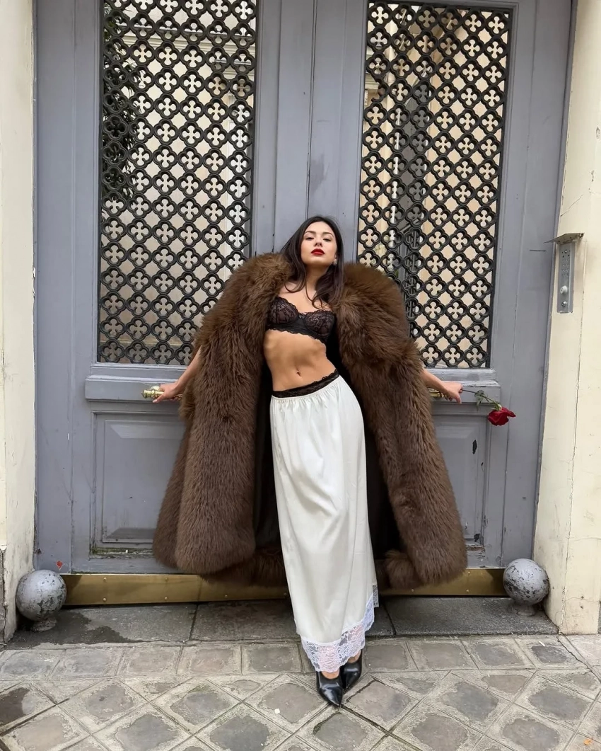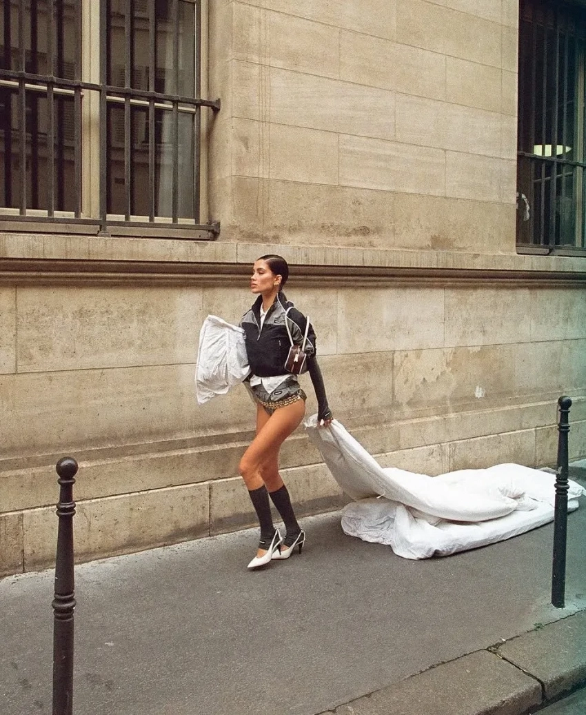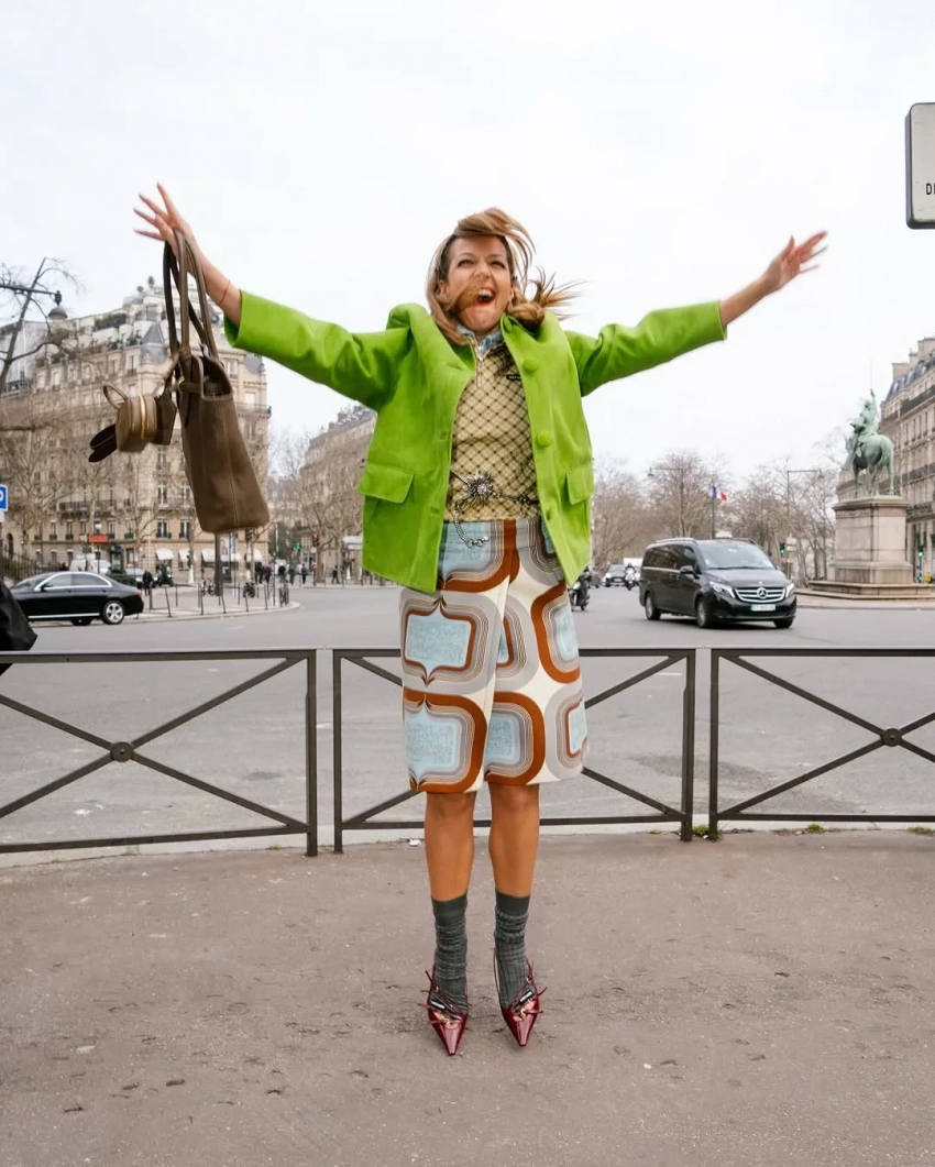 Модель Вика Евсеева позировала на улицах города в луках The Row, Alaia и Lemaire в объективе стилиста и экс-директора моды Harper's Bazaar Кати Табаковой. Светская девушка Ксения Китаева тоже ходила на вечеринку Miu Miu и выгуливала розовое пальто Lesya Nebo. Диана Коркунова посетила шоу Vaquera в шубе и кружевном бра, а на прогулку по весенней набережной отправилась в прозрачной юбке.