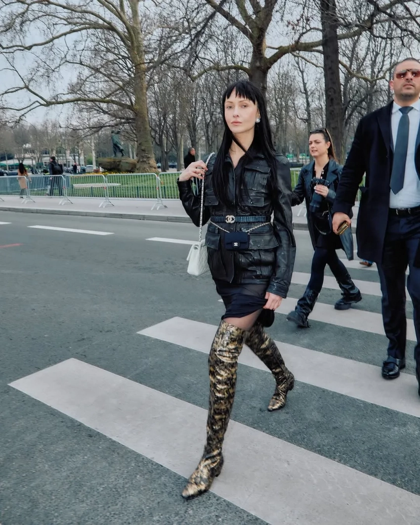 Лотта Волкова/Фото: miumiu/Instagram*Ольга Карпуть пришла на показ Chanel в чёрном парике с чёлкой и кожаных ботфортах, а стилист Ксения Смо и её подопечная Эля Абрамова показали модные луки, которые блогерша выгуливала на улицах французской столицы. На показ Enfants Riches Déprimés Абрамова нарядилась в шубу бренда Prototypes[b][/b]с надписью "Баба-яга", кожаные шорты-трусы и тоже решила "модно" прилечь на асфальт.