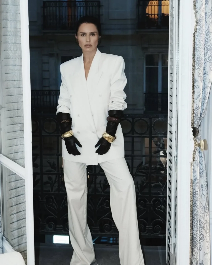 Тем временем у Екатерины Мухиной с её плотным расписанием показов нет времени делать снимки стритстайла, поэтому экс-главред Elle за неделю поделилась только парой фото в образах total black. Мэри Лист, которая тоже не пропускает ни одной Недели моды, показала свой лук для показа Balmain, а Ксения Шипилова — для Giambattista Valli. Певица Катя Iowa, оказывается, тоже прилетела в Париж и позировала на стритстайле в необычном платье Duran. Оксана Бондаренко сходила на модную вечеринку в красном платье Valentino, а для ужина Loewe нарядилась в брючный костюм.