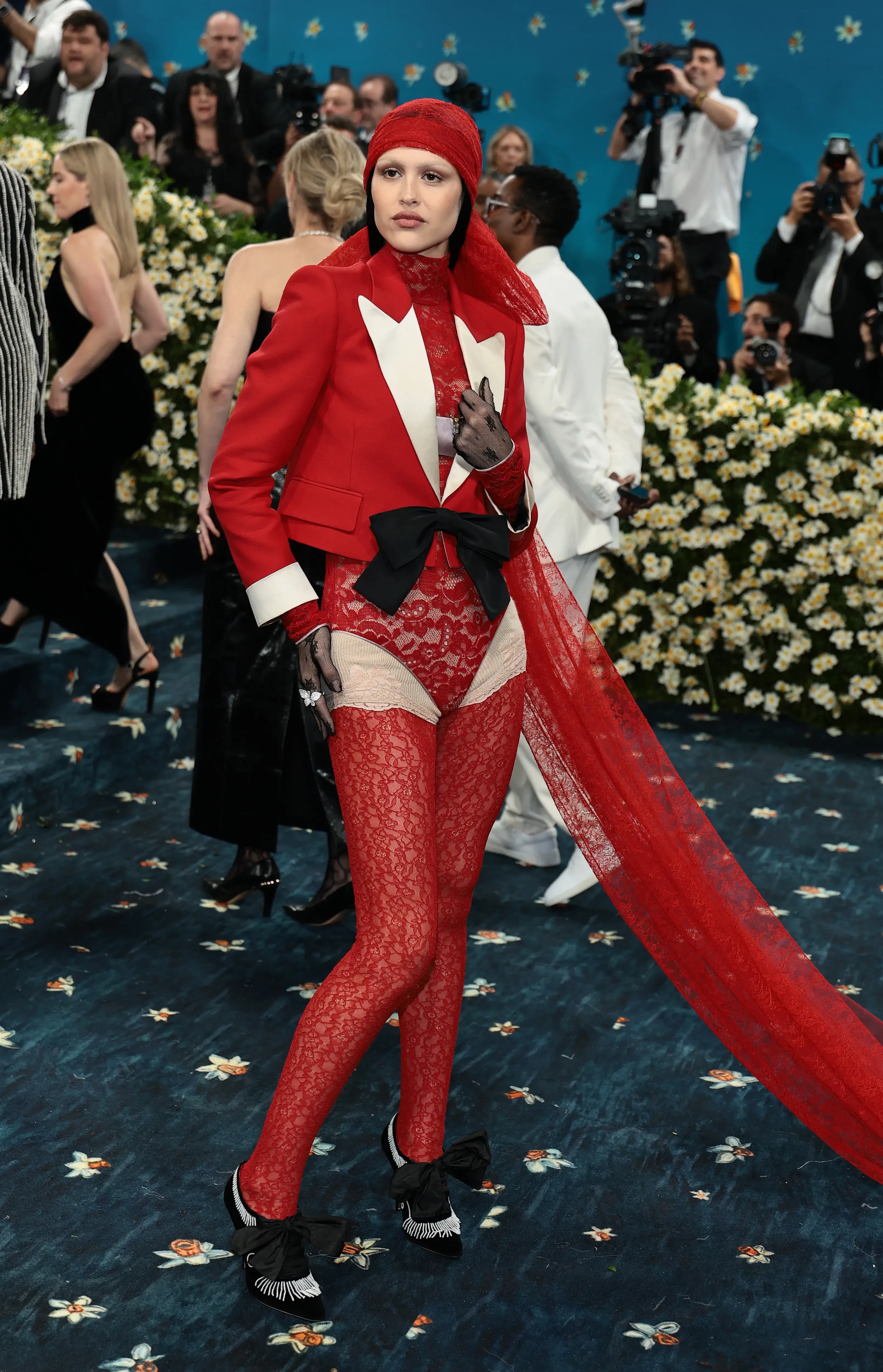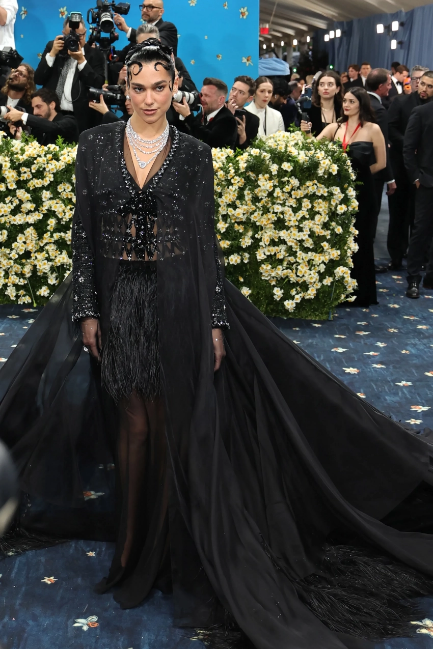 Doja Cat в Marc JacobsШакира и Майя Хоук появились на дорожке в розовых платьях, не имеющих ничего общего с темой мероприятия. Джорджина Родригес тоже решила не вникать в суть Бала и пришла в платье-комбинации Vetements. Образ total black Дуа Липы в этом году, к сожалению, не особо отличается от её прошлогоднего выхода. Модель Прешес Ли тем временем показала самый неудачный образ на дорожке, появившись в блестящем облегающем комбинезоне и леопардовой накидке.
