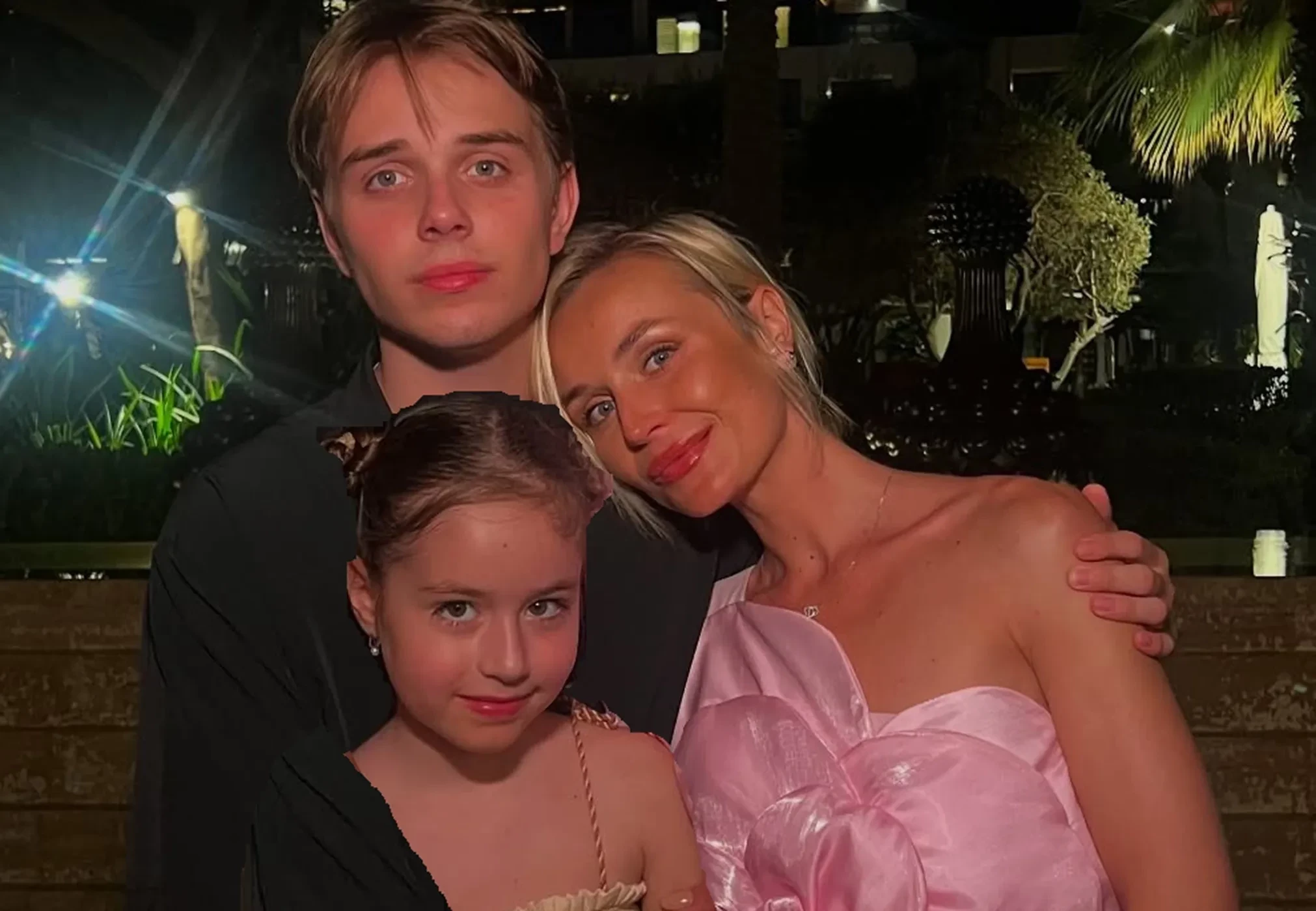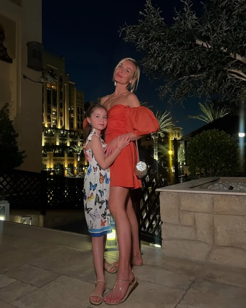На одном из снимков 38-летняя Гагарина в розовом мини-платье запечатлена с 17-летним сыном Андреем от актёра Петра Кислова и с восьмилетней дочерью Мией от фотографа Дмитрия Исхакова.