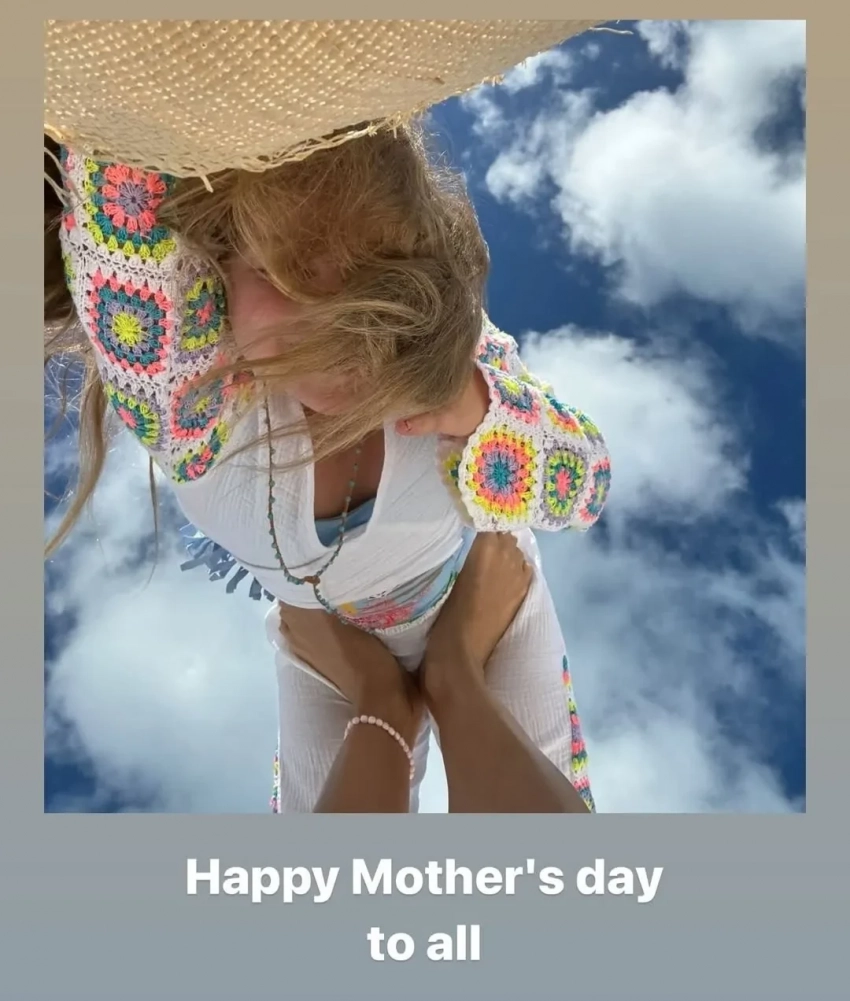 На одном из снимков модель поднимает улыбающуюся дочку ногами, а на другом они вместе позируют перед камерой с напитком в руках. "Всем счастливого Дня матери", — написала Ирина в сторис*.