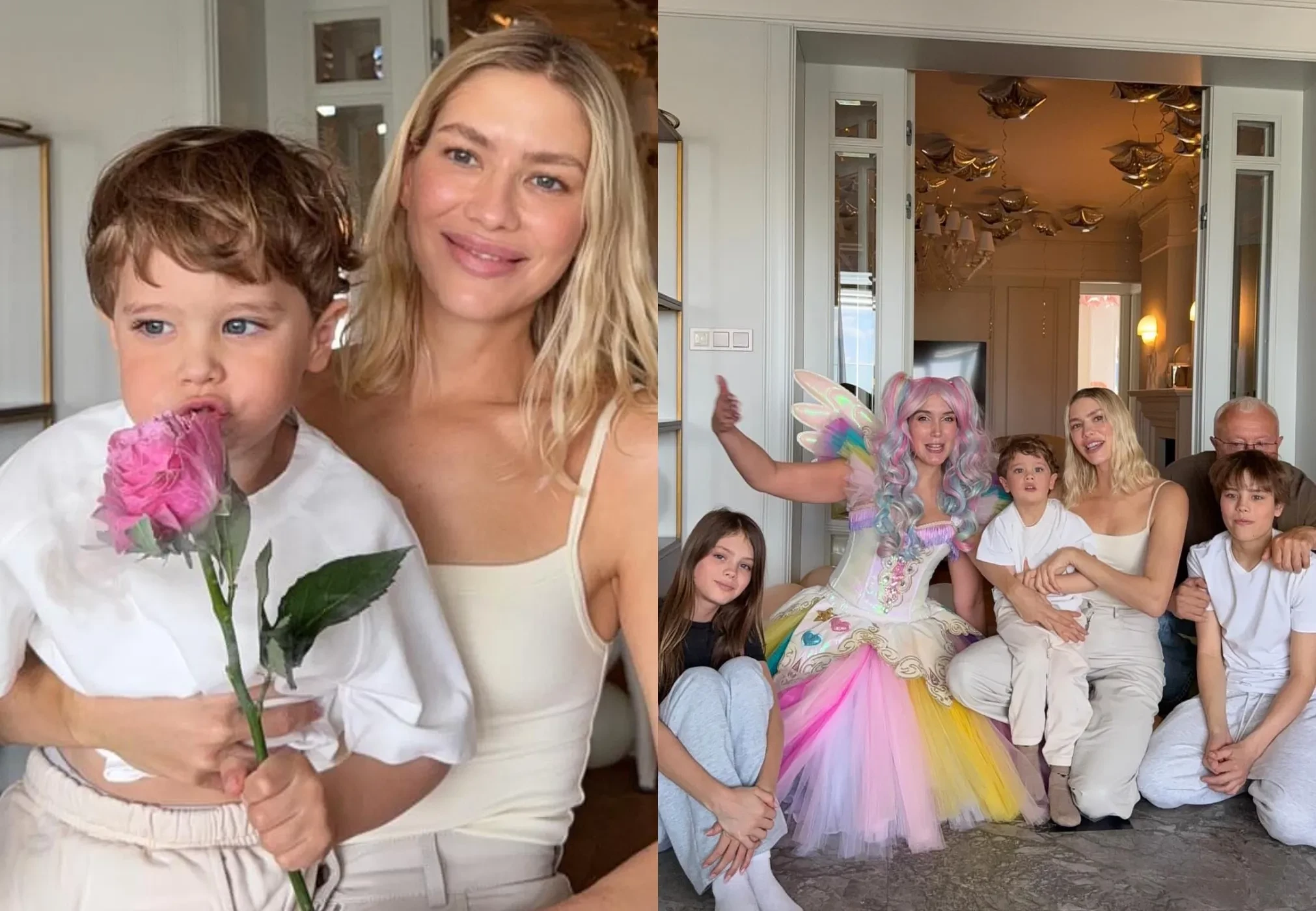 На новых снимках Елена Перминова позирует вместе с именинником и остальными детьми. Она добавила также несколько снимков сына с аниматором в костюме Бубы, а также с тортом в виде рыцарского замка. На фотографиях также появился бывший возлюбленный Перминовой, 65-летний Александр Лебедев. "Твой четвёртый день рождения в кругу самых близких. Пусть так будет всегда, наш любимый Сашулькин. Ты наш генератор радости. Счастливы, что ты у нас есть. С твоим днём рождения, наш кудряшкин!" — подписала 38-летняя Перминова фотографии.