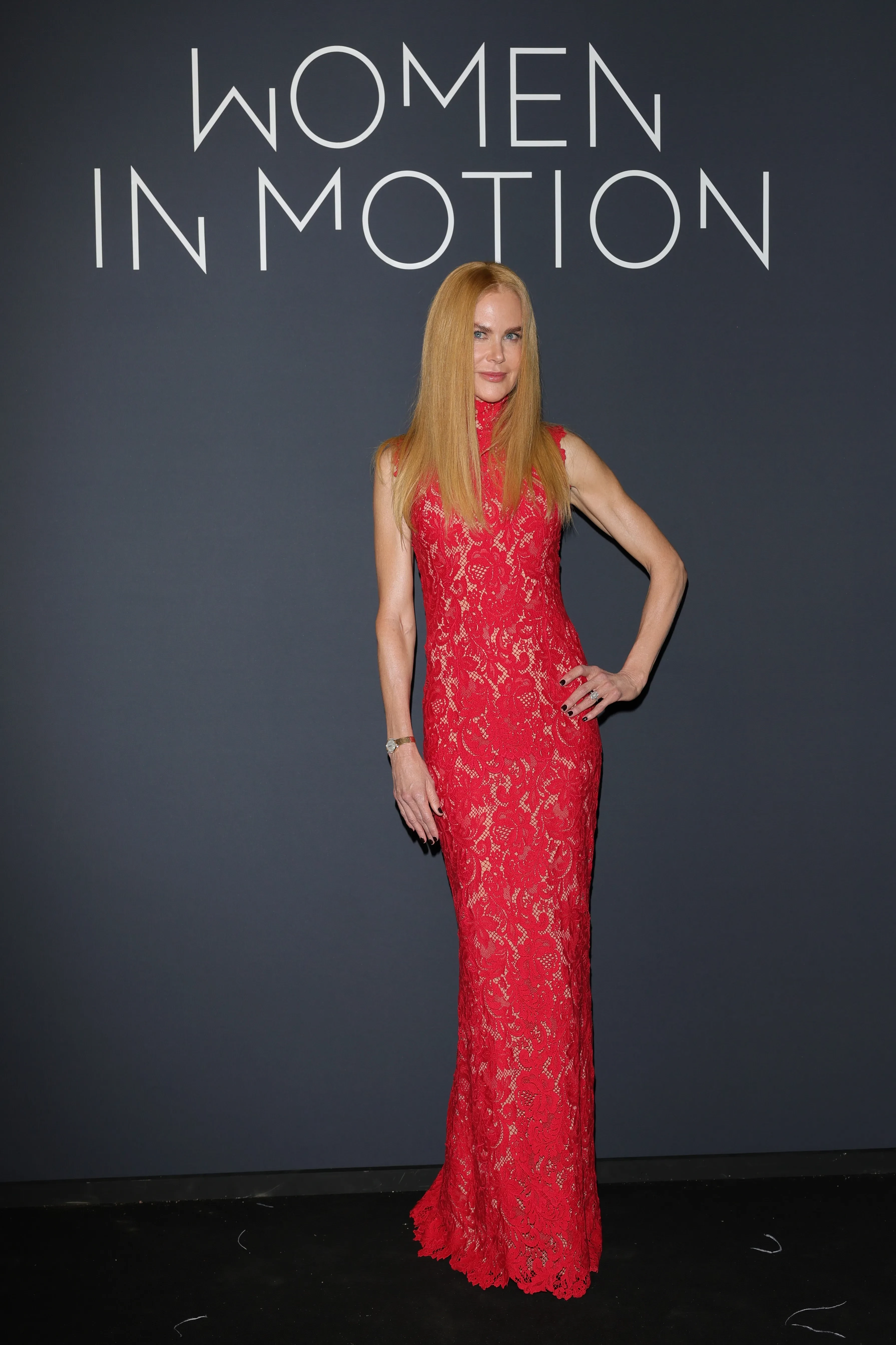 К фотографам Кидман вышла в красном кружевном платье в пол с эффектом "голого тела" — на фоне нового дресс-кода Канн, запрещающего звёздам демонстрировать наготу на красной дорожке.