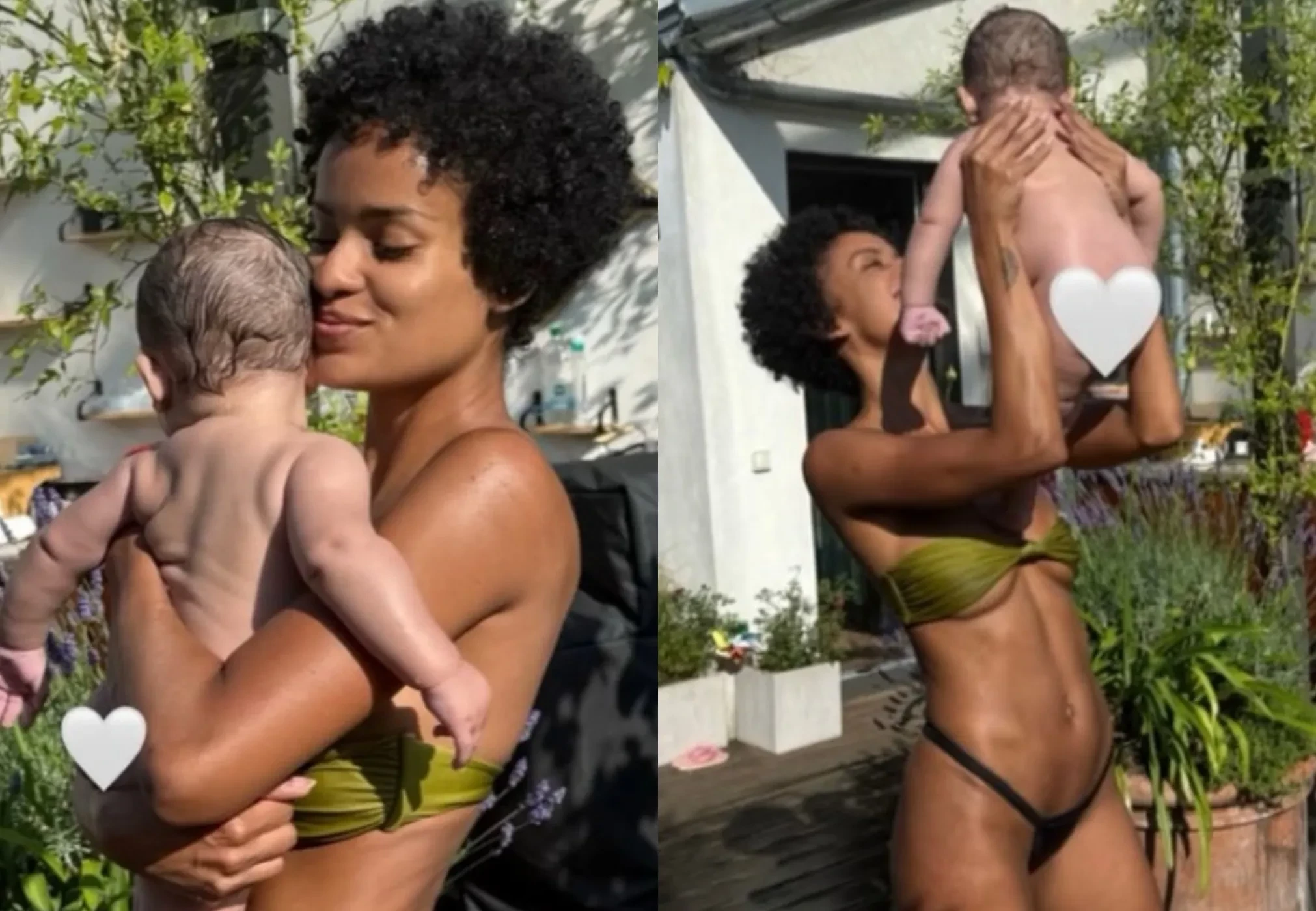 Девушка Венсана Касселя Нара Баптиста позирует в бикини с сыном на руках