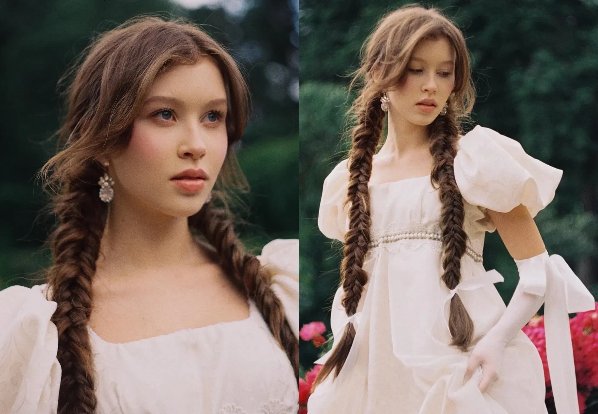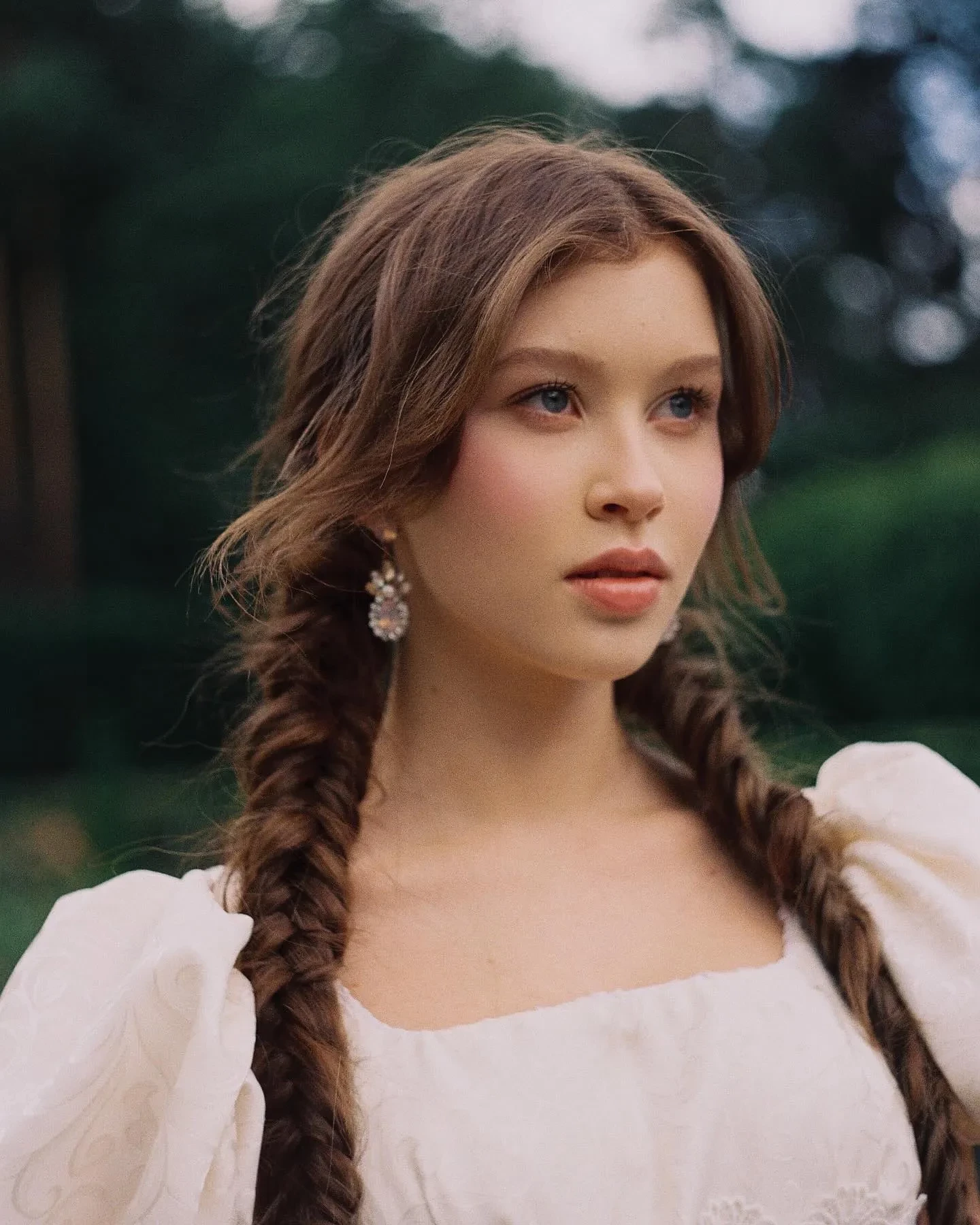 На фото Анна позирует в длинном белом платье с пышными рукавами и перчатках с атласными лентами. Волосы она решила заплести в две косы, а образ дополнила серьгами с камнями. "Я только что теперь живу, я только что теперь люблю", — подписала актриса публикацию, предположительно, признавшись в чувствах Дмитриенко. Он, к слову, не остался в стороне и оставил под постом короткий комментарий: "Ангельская".