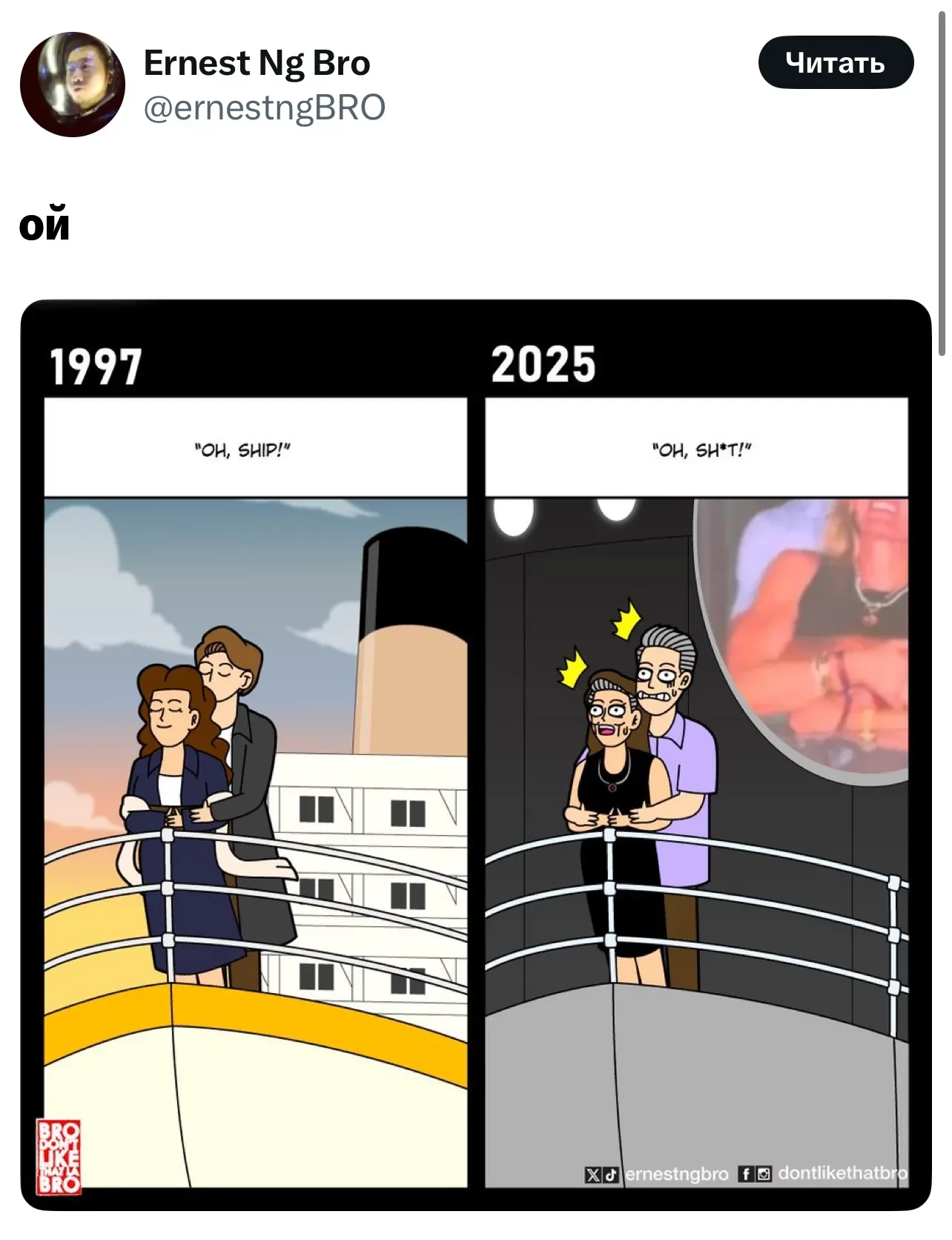 https://t.me/spletnik2006/35878Энди Байрон и Кристин КаботОригинальный ролик в тиктоке за считанные минуты собрал миллионы просмотров, стал вирусным и породил десятки мемов.