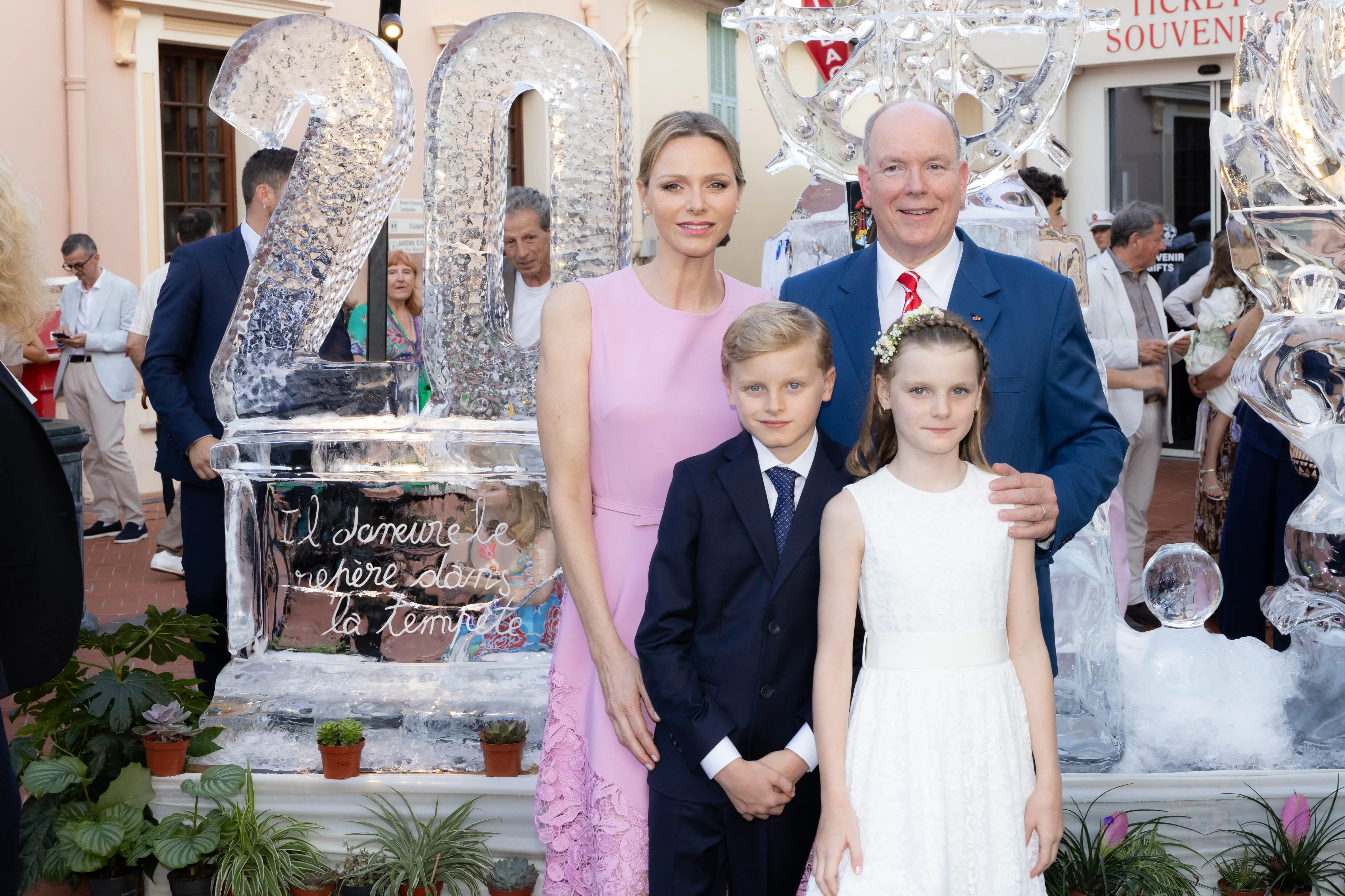 По случаю юбилея в княжестве было организовано торжество. Альбер разделил исторический момент с жителями Монако, собравшимися на Дворцовой площади, украшенной соответственно событию. Поддержать его пришли его жена, 47-летняя княгиня Шарлен, и их дети: 10-летние близнецы Жак и Габриэлла.