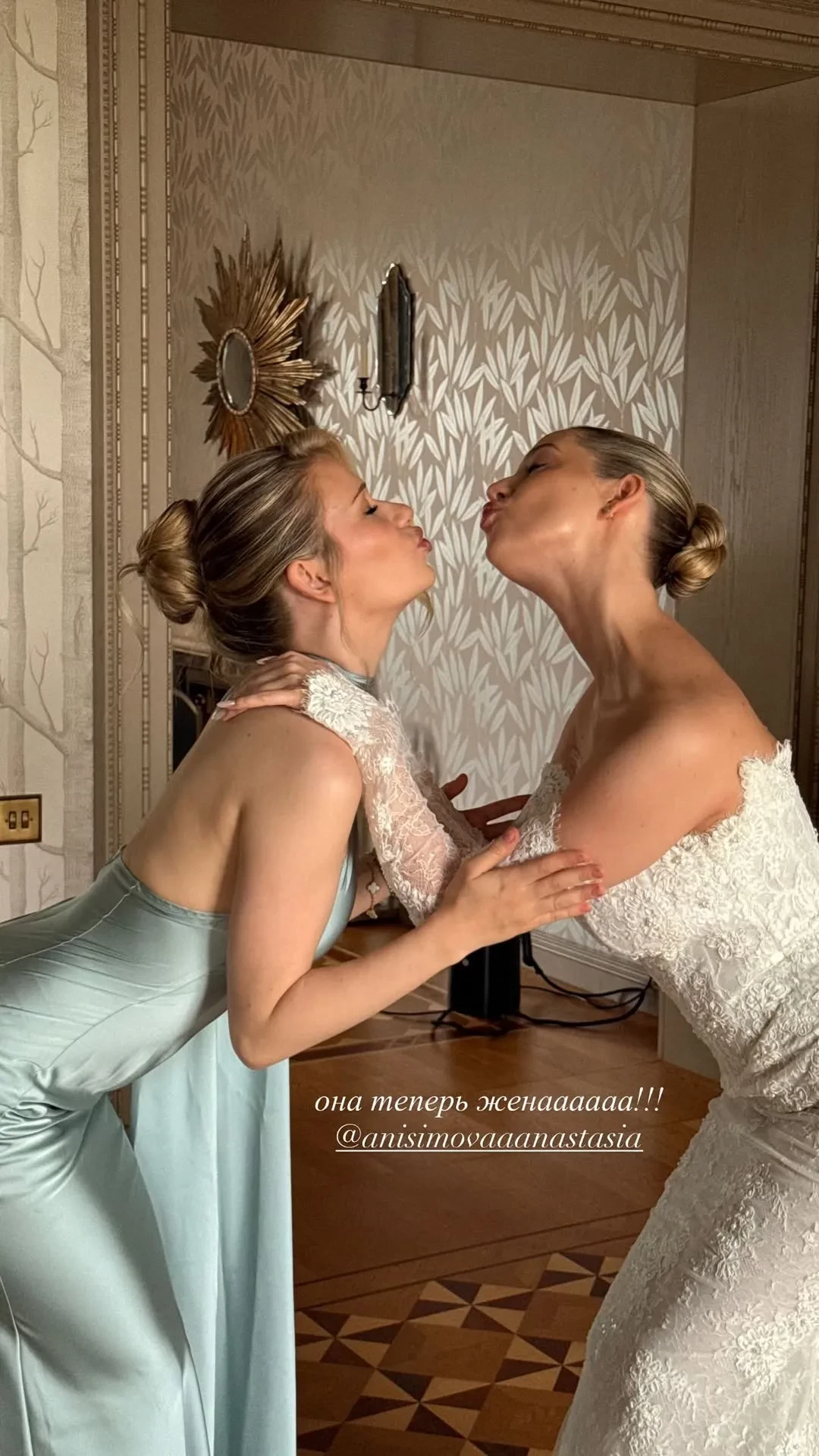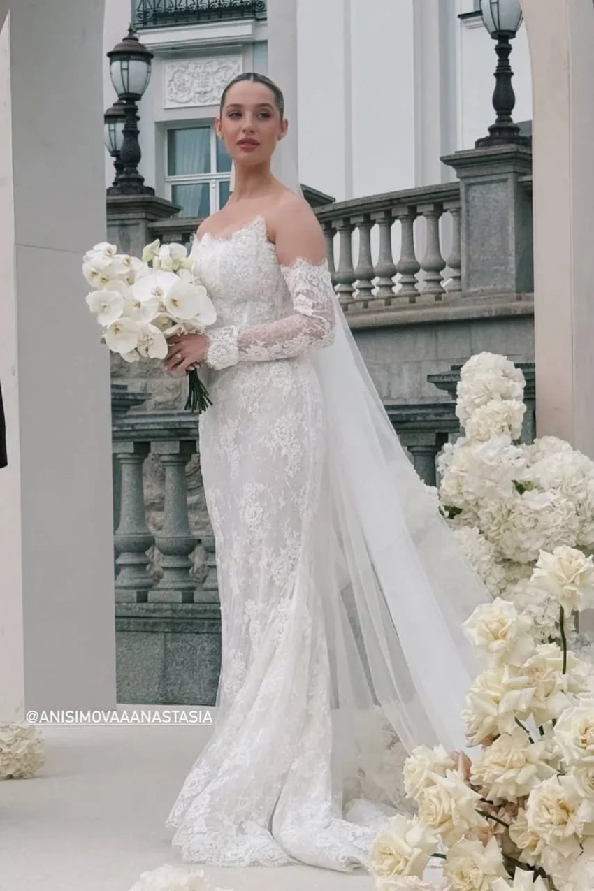 Церемония прошла в одной из самых модных локаций года — подмосковной усадьбе Villa Michetti (ранее там сыграли свадьбы блогеры Адель Вейгель и Михаил Литвин, а также Ксения Бородина и Николай Сердюков). Невеста предстала в кружевном платье в пол и фате, а жених выбрал классический чёрный смокинг с бабочкой.