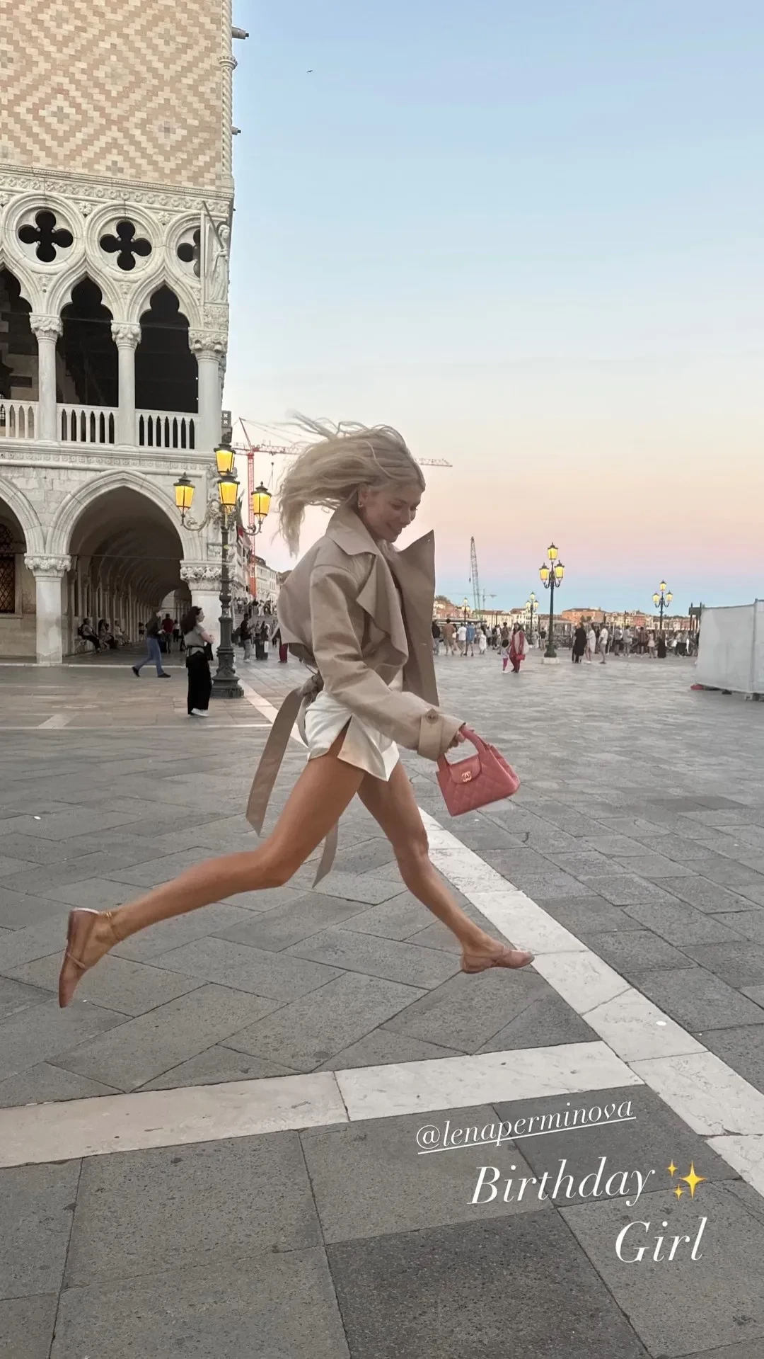 В видео Елена Перминова гуляет по улицам Венеции и прыгает на главной площади города. Также Тарас добавил несколько снимков самой Венеции и архитектуры вокруг. "С днём рождения", — подписал он один из роликов и добавил эмодзи сердца.