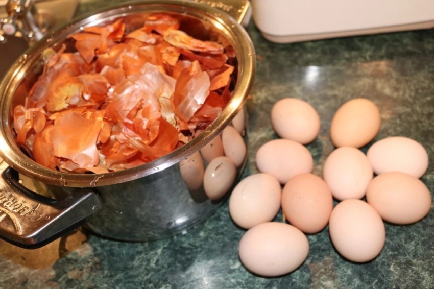 • Луковая шелуха — собирайте ее заранее, ведь она будет основой для создания красивого оттенка.