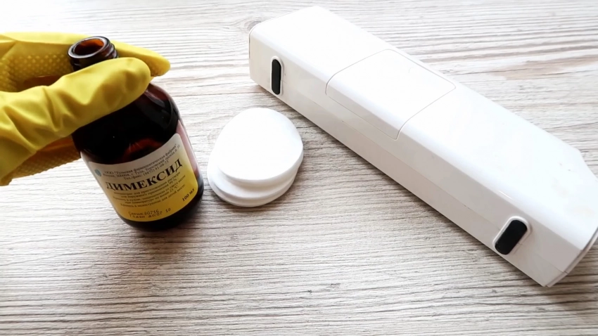 Медицинский препарат, эффективный для очистки старых загрязнений. Работай в перчатках и очищай поэтапно, чтобы избежать повреждения пластика.
