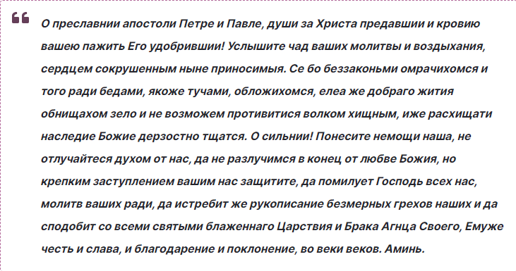 Молитва апостолам Петру и Павлу