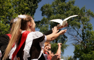 В конце школьной линейки традиционно запускают в небо белых голубей, символизирующих мир и переход выпускников во взрослую жизнь. Воздушные шары также становятся неотъемлемой частью праздника, а его завершает танец выпускников.