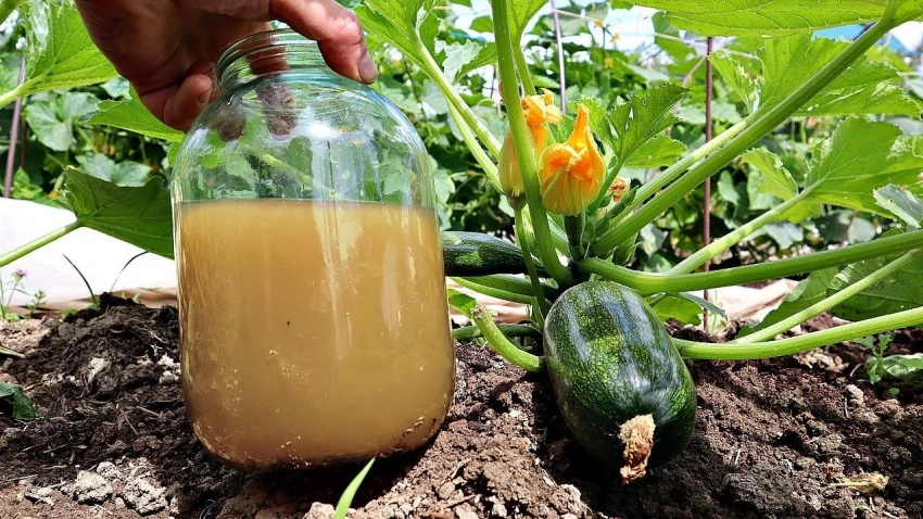 Куриный помёт — кладезь питательных веществ. Возьмите куриный помёт и смешайте с водой в пропорции 1:1, оставьте настояться на 3–4 дня в тёплом солнечном месте. Перед подкормкой разведите концентрат из расчёта 1 литр настоя на 20 литров воды и полейте кабачки. Эта подкормка укрепит молодые побеги и повысит иммунитет растений.